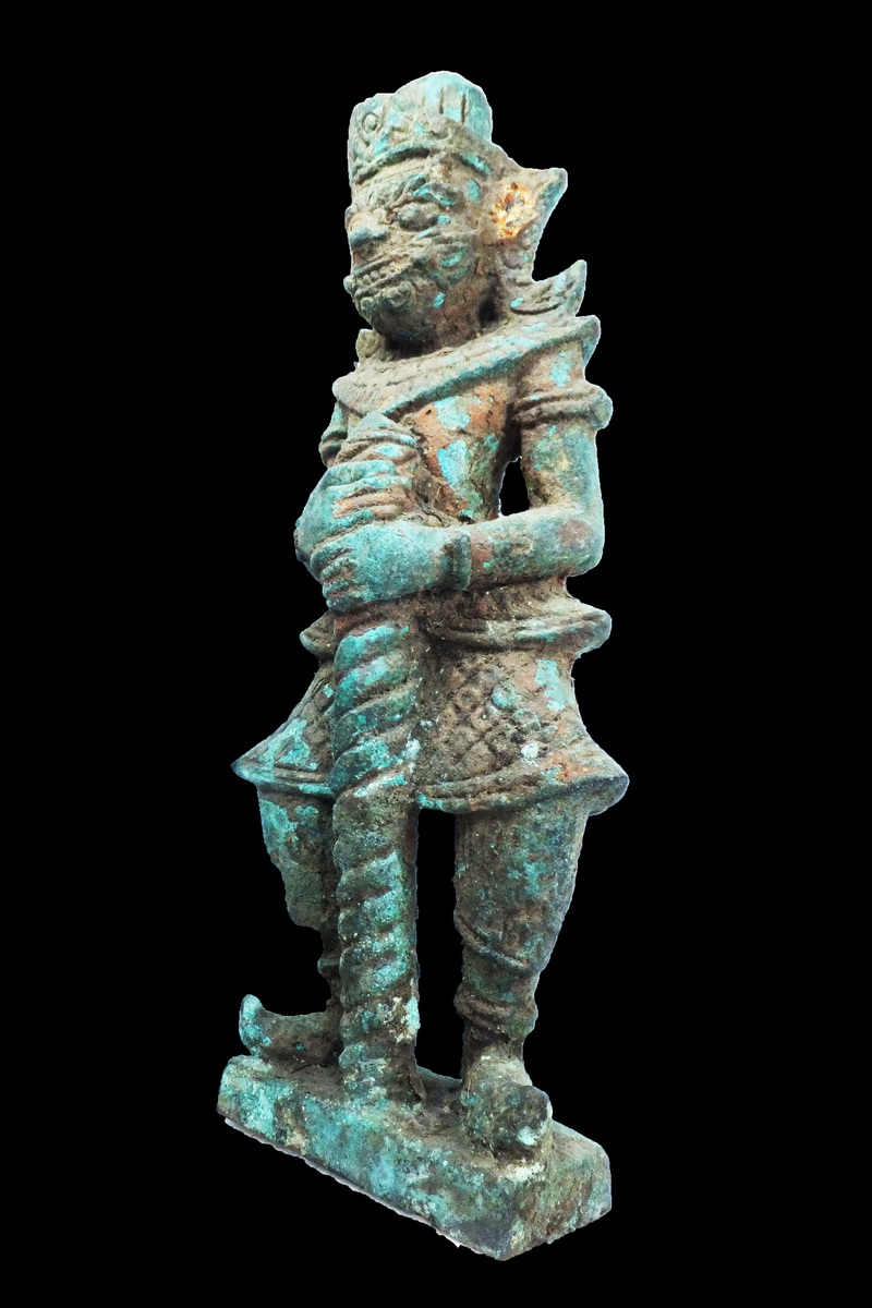 ข้อมูลของพระเครื่อง : เทวรูป ท้าวเวสสุวรรณ (ท้าวกุเวร) ศิลปกรรมขอม เนื้อสัมฤทธิ์ สนิมสีฟ้าอมเขียว