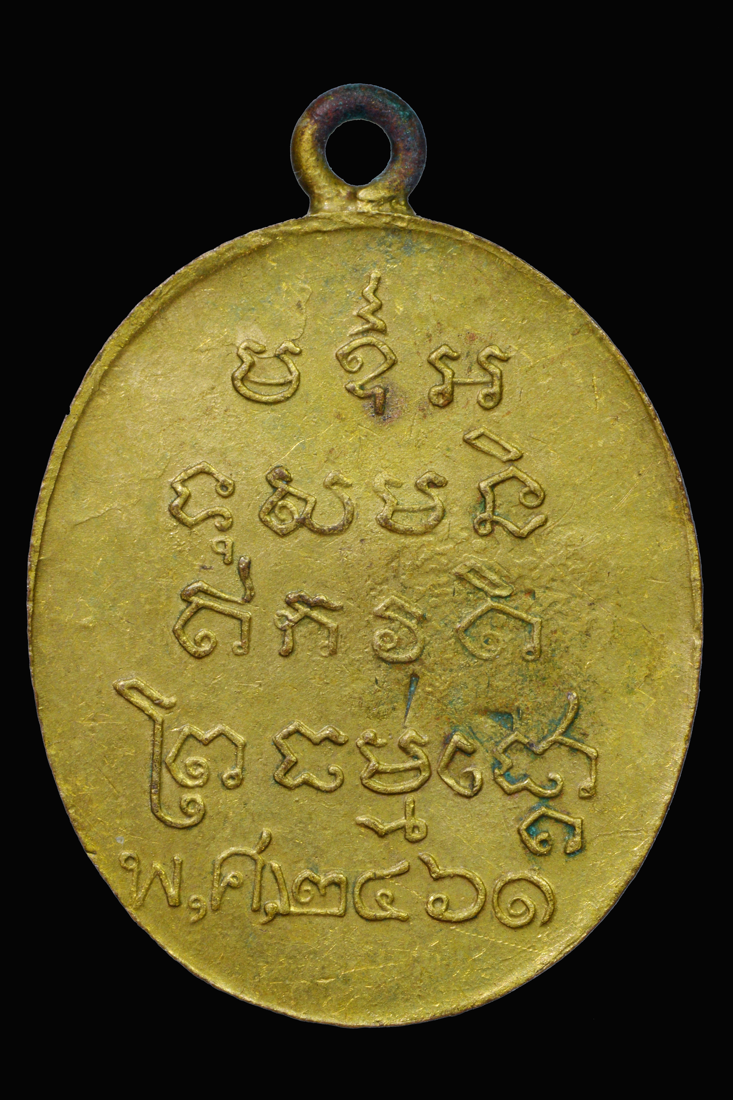 ลักษณะเหรียญ ด้านหน้าเป็นรูปหลวงพ่อบ่ายครึ่งองค์ ขีดตรงบ่าคมชัด ล้อมรอบด้วยช่อรวงข้าว ด้านบนลงยันต์คมชัด ด้านหลังเป็นอักขระขอม ใต้อักขระเขียนตัวเลข “พ.ศ.๒๔๖๑”